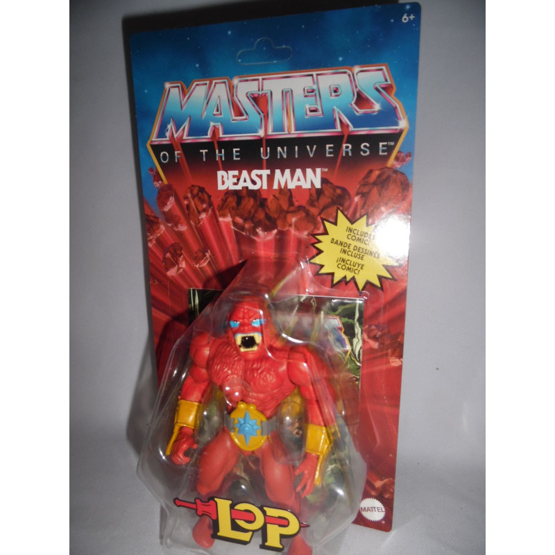 Voici la version "Lords of Power" du Monstre (Beast Man) pour la gamme Origins de chez Mattel. Entièrement rouge, seuls les yeux et la bouche sont colorés. Son armure est principalement jaune avec quelques touches de bleu. Ses épaulettes de protection comportent des pics surdimensionnés que Musclor devra affronter!