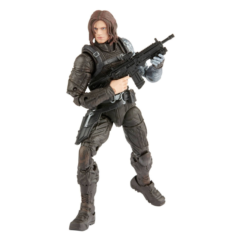 Issue de la série "Falcon et le Soldat de l'Hiver", cette figurine reprend le personnage du Winter Soldier dans sa tenue originale. Celle qu'on voit dans ces flashbacks, lorsqu'il travaillait sous les ordres d'Hydra. Hasbro a joint une tête alternative (sans le masque), ainsi que deux pistolets, un fusil d'assaut et un couteau à la figurine.