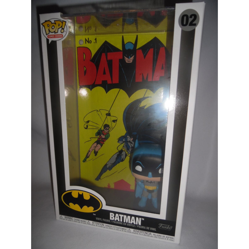 Dans la gamme POP! Comic Covers, cette figurine de Batman est entouré d'un boitier et de la couverture du numéro 1 du comic Batman.
