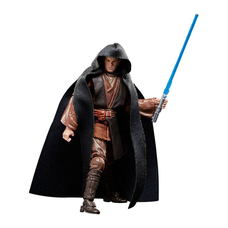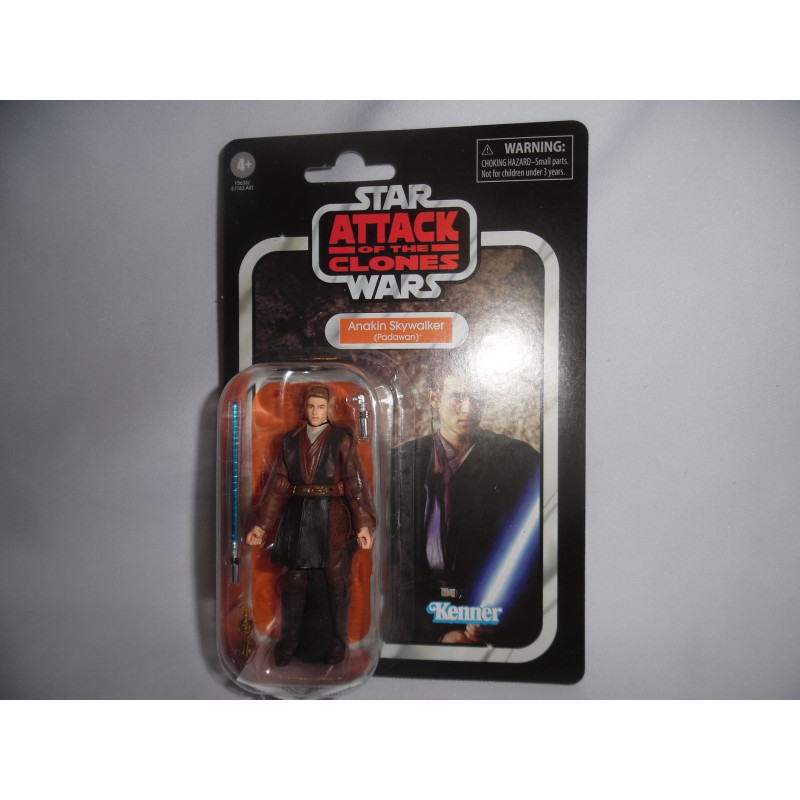 Basée sur le film Star Wars: L'attaque des Clones, cette version de la figurine d'Anakin Skywalker (Padawan) est accomapgnée par un sabre laser bleu et une cape de jedi ou du moins d'apprenti.