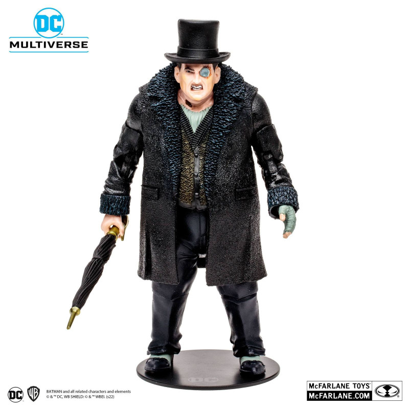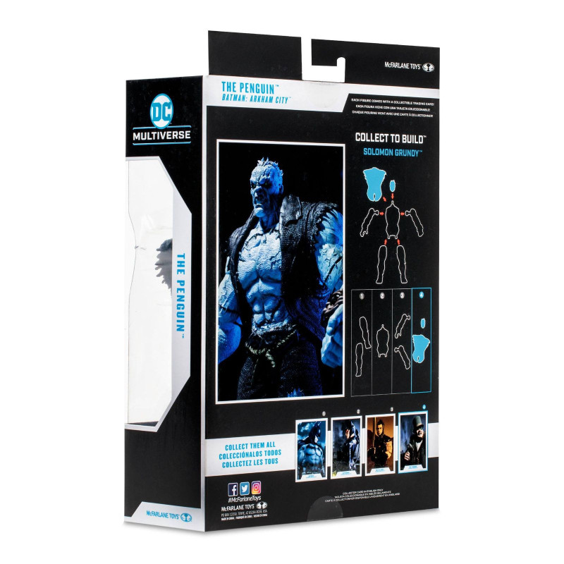 Retrouvez le célèbre Pingouin de l'univers du jeu vidéo Batman Arkham City, en figurine de la marque McFarlane. Elle est fournie avec un socle noir, un parapluie fermé et un morceau de la figurine à construire de Solomon Grundy.