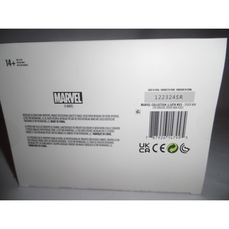 Cette figurine au format 1/10 mesure environ 18 cm et est conçue pour séduire aussi bien les collectionneurs passionnés que les amateurs de l’univers Marvel. Elle est présentée dans un packaging collector qui reprend la couverture originale du comic book The Amazing Spider-Man n°302. De quoi la conserver précieusement dans sa boîte ou l’exposer fièrement avec le décor fourni.